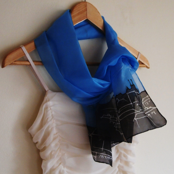 Hedvábná ručně malovaná šála, na obou jejích koncích je vymalováno panorama města Brna s hradem Špilberk a s kostelem sv. Petra a Pavla. Vhodné také jako dárek nebo suvenýr z Moravy.