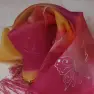 Hedvábná šála, ručně malovaná. Svěží barvy. Vhodná pro běžné nošení i pro slavnost. Přehodíte jako pavučinku přes ramena k topu i omotáte kolem krku do bundy.