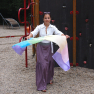 Jednoduchá elegantní šála 150 x 45 cm. V pruzích jsou barvy duhy - fialová, modrá, zelená, žlutá, oranžová, červená a opět fialová.