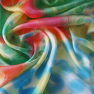 Malovaný napařovacími barvami na hedvábí, červené květiny v zelené trávě, jen jen se bosky rozběhnout, protože i obloha je modrá....a slunce svítí.