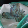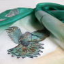Malováno napařovacími barvami, hedvábí zůstává jemné a ponechává si lesk. Bez kontur.