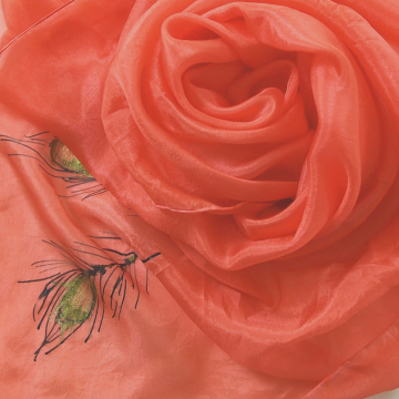 Malováno napařovacími barvami, hedvábí zůstává lehké, jemné, krásně splývá. Lze prát i žehlit - perte krátce a lehce jen ve vlažné vodě ručně.